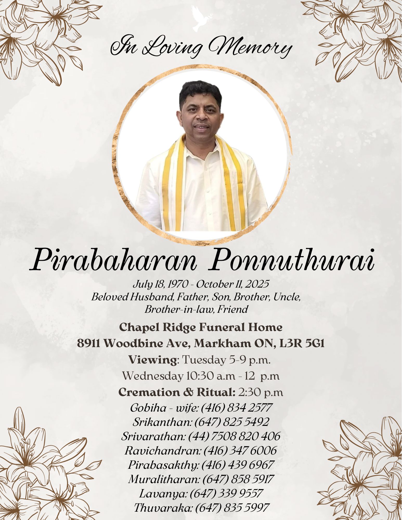 துயர் பகிர்வு: Pirabaharan Ponnuthurai