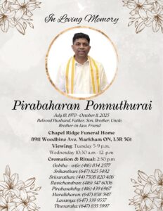 துயர் பகிர்வு யாழ்ப்பாணம் இந்துக் கல்லூரியின் (1973 A/L) புகழ் பூத்த பழைய மாணவரும், பிரபலமான விளையாட்டு வீரரும் குறிப்பாக மிகச் சிறந்த வேகப் பந்து வீச்சாளரும்,.